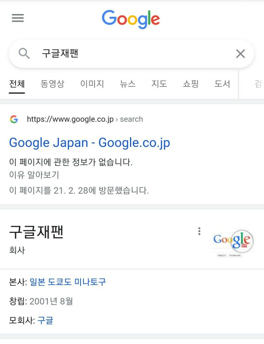 구글 검색창에 구글 재팬을 검색해서 나오는 바로가기 링크를 클릭해보면 구글 재팬으로 바로가기가 되지 않습니다.
